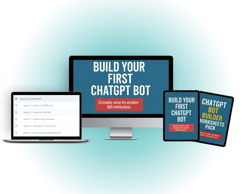 This course gives you the exact step-by-step system to go from blank screen to a live, working ChatGPT bot — so you can finally feel confident using AI the smart way.